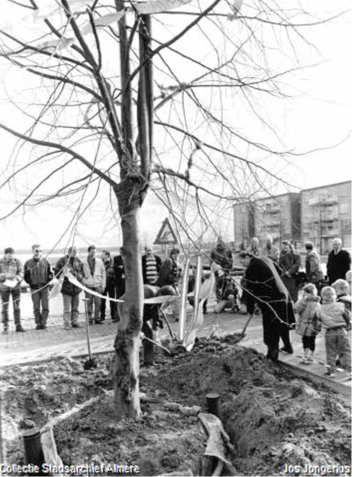De Beatrixlinde op haar huidige plek aan de Beatrixpromenade in het Beatrixpark in Almere Stad