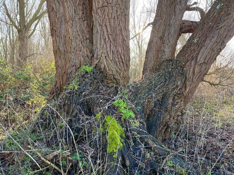 Alle wilgen in het Wilgenbos zijn stuk voor stuk markant maar twee bomen springen er toch wel uit. Dat is een meerstammige wilg met een stamomtrek van meer dan 8 meter (!) en een eenstammige wilg met een stamomtrek van ongeveer 5 meter. Foto's van deze twee markante wilgen vind je hieronder.