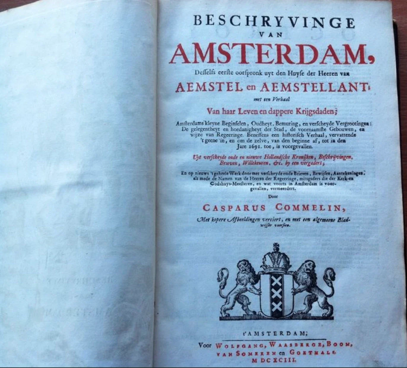 De kopergravure van Casparus Commelin is een belangrijk onderdeel van het boek "Beschryvingen van Amsterdam", uitgegeven door C. Commelin in 1693. Dit boek biedt een uitgebreid overzicht van de stad en haar geschiedenis, en de gravures van Commelin illustreren de pracht en praal van Amsterdam in die tijd. Het boek is een waardevolle bron voor historici en kunstliefhebbers die meer willen weten over de stad en haar verleden.