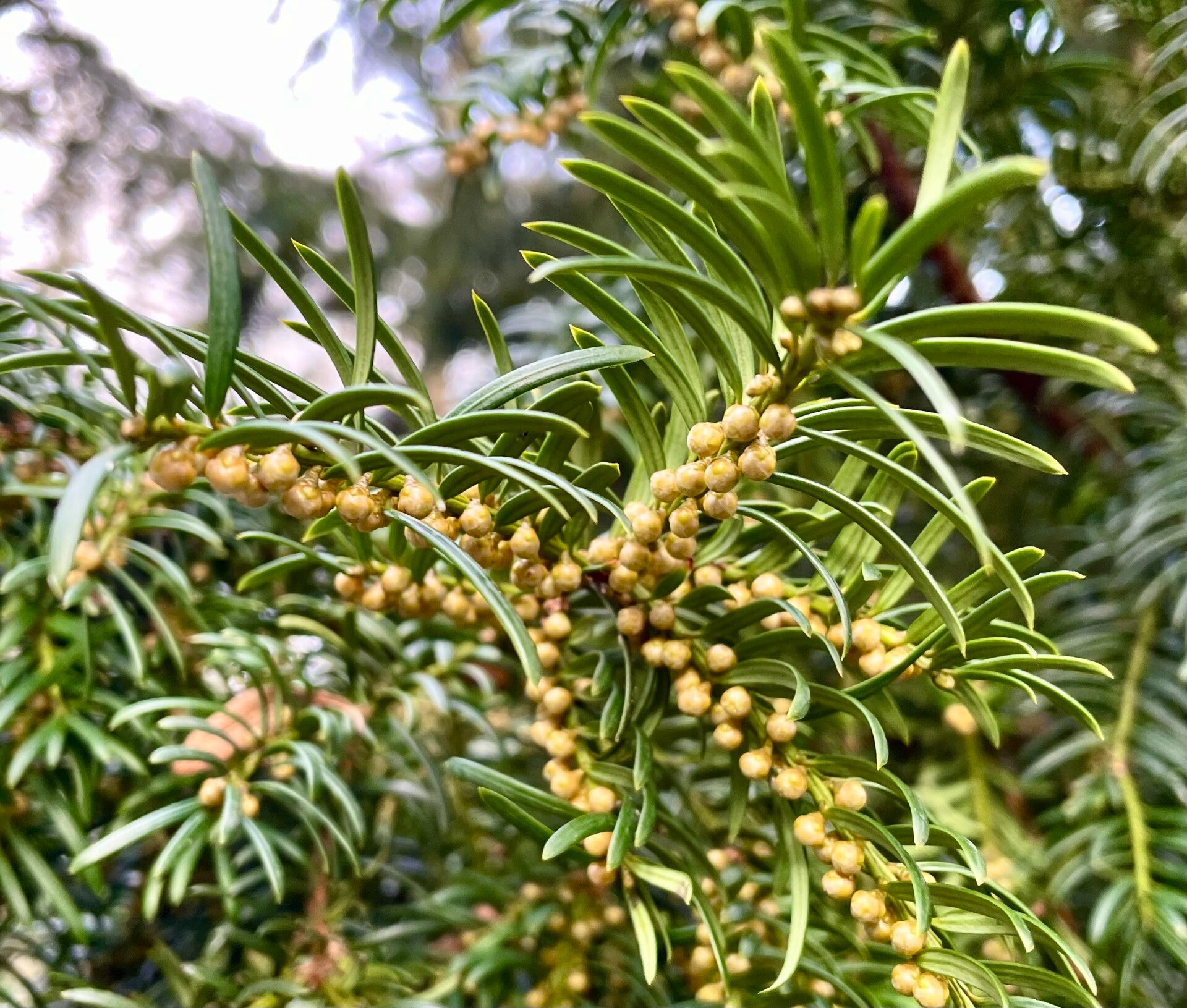 foto rechts: de mannelijke zaadbolletjes van de taxus